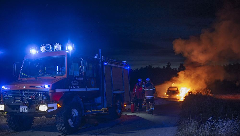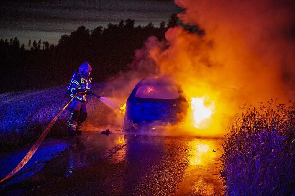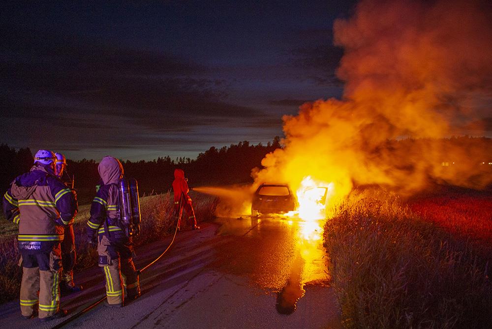 När räddningstjänsten kom till platsen var bilen helt övertänd.
