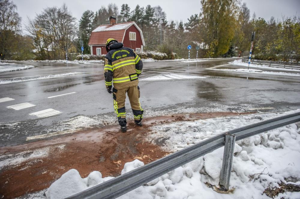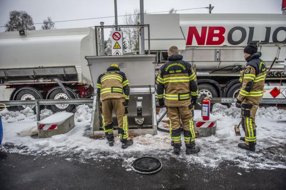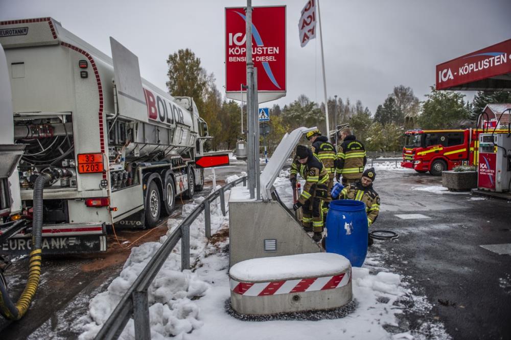 Räddningstjänsten fick rycka ut på en sanering efter att att en tankbil läckt ut drivmedel.