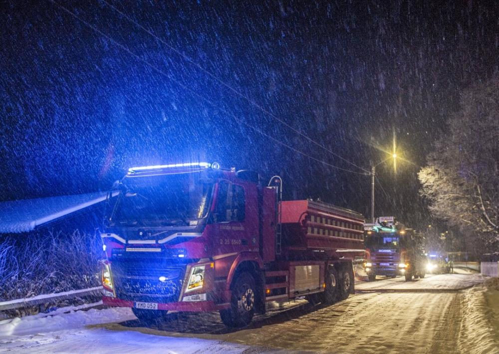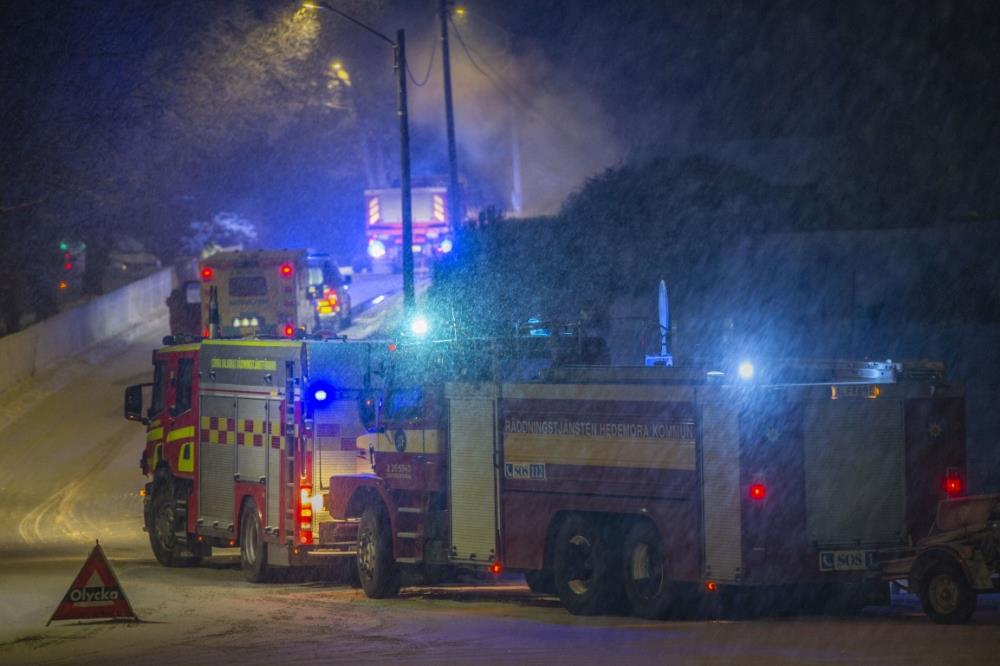 Styrkor från Hedemora, Horndal och Avesta larmades till platsen. Även polis och ambulans.