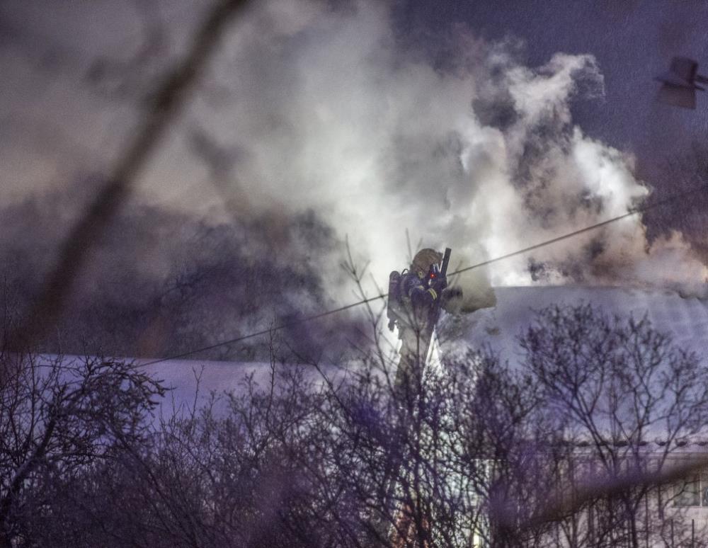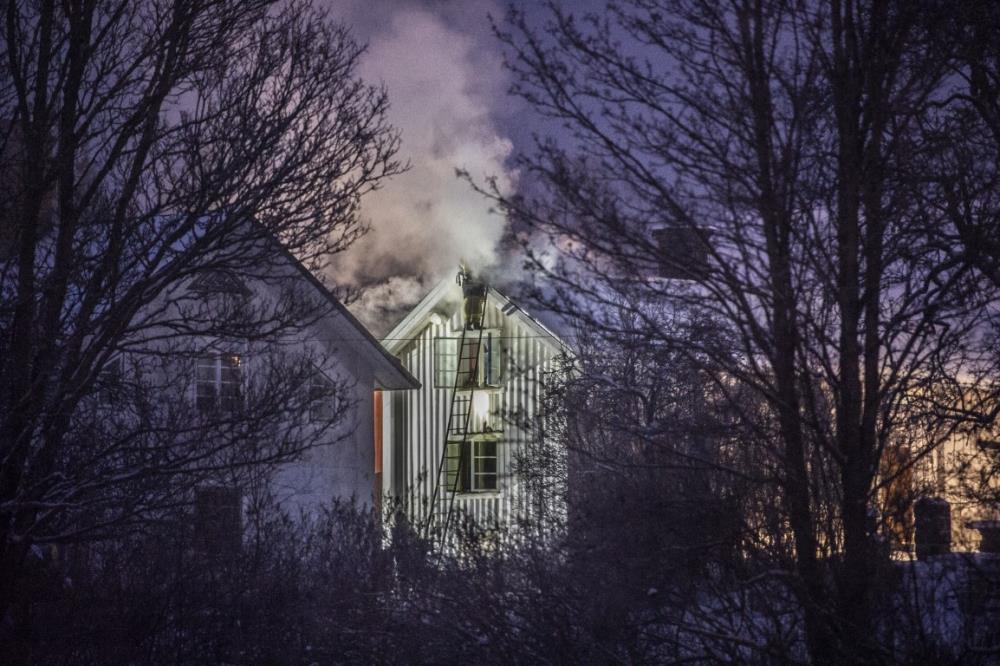 Det var kraftig rökutveckling när räddningstjänsten kom fram. Ambulanspersonal ska ha undersökt en person som fått i sig rök.