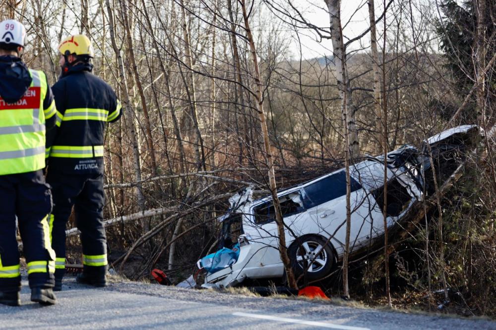 Räddningstjänst, polis, ambulans och en ambulanshelikopter larmades till olycksplatsen. Föraren en man i 25-årsåldern fördes till sjukhus med oklara skador.