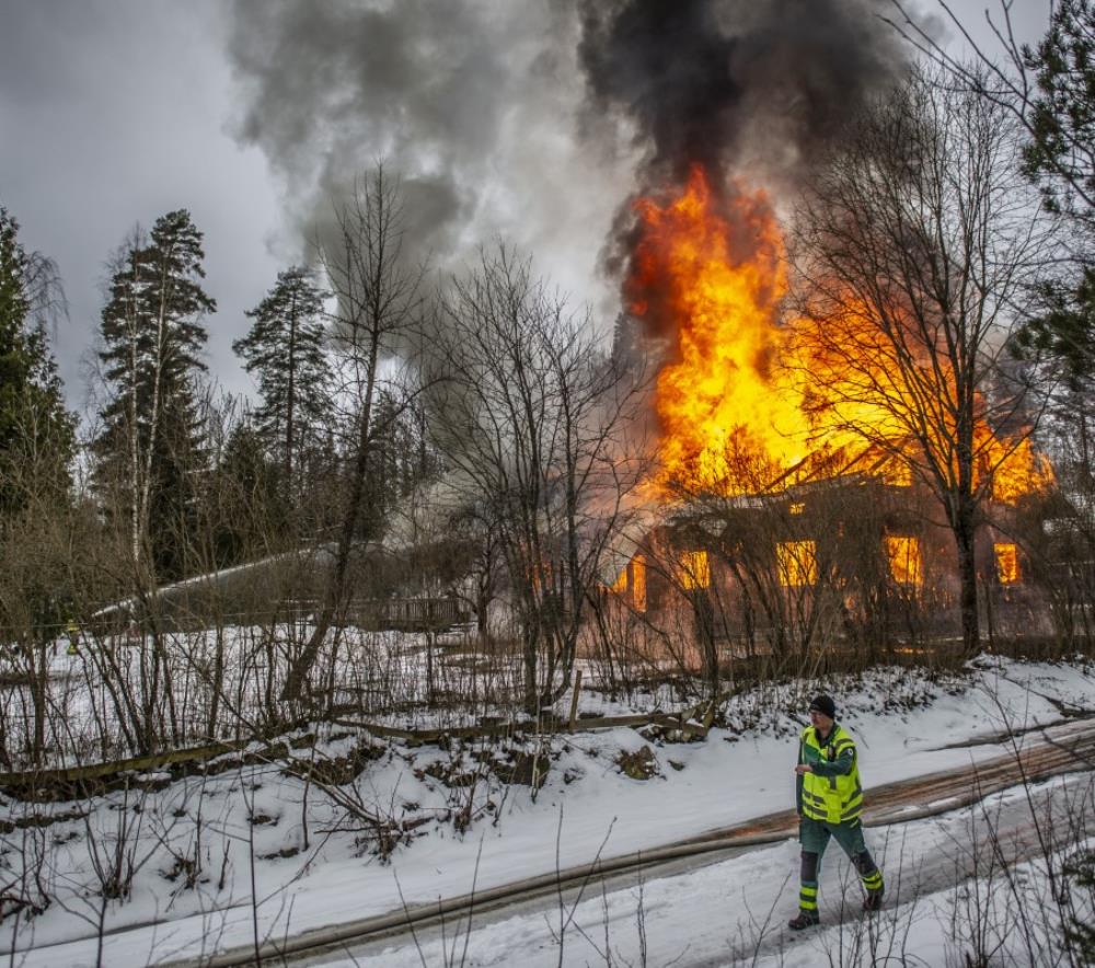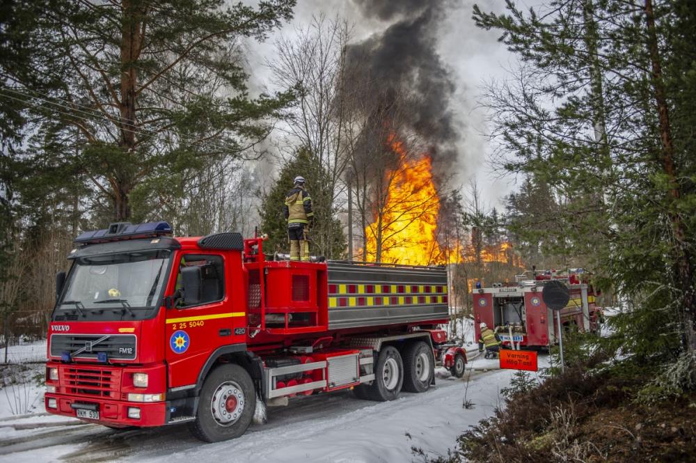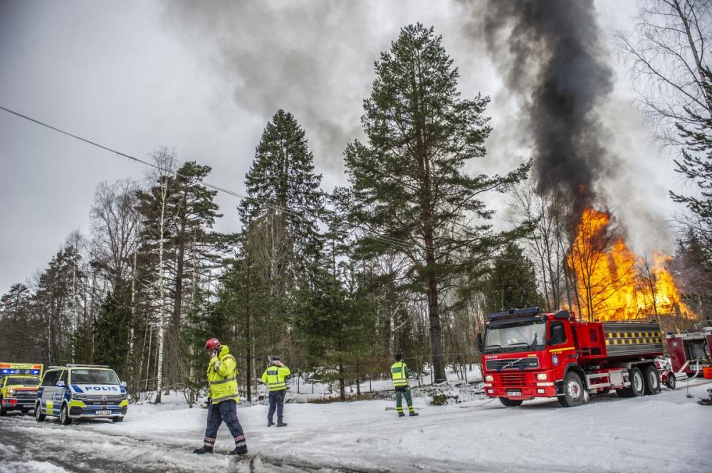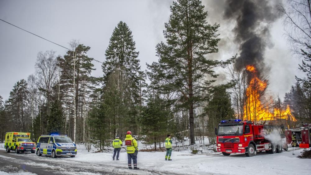 Nicole Chabo, teamledare på SOS Alarm, förklarar att branden är så kraftig att räddningstjänsten inte kan ingripa invändigt. Lågorna slår ut genom fönster och dörrar, vilket gör det för farligt för insatspersonalen att närma sig byggnaden.