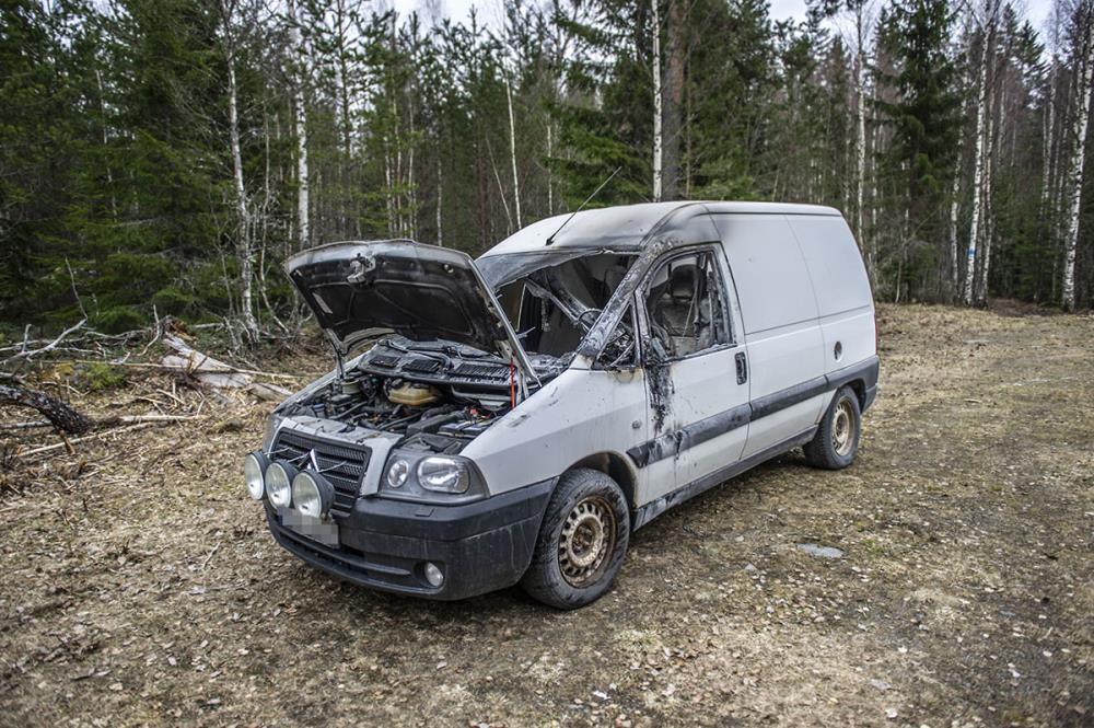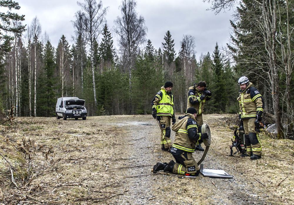 En bil började brinna i går i närheten av Dormsjövägen i Garpenberg.