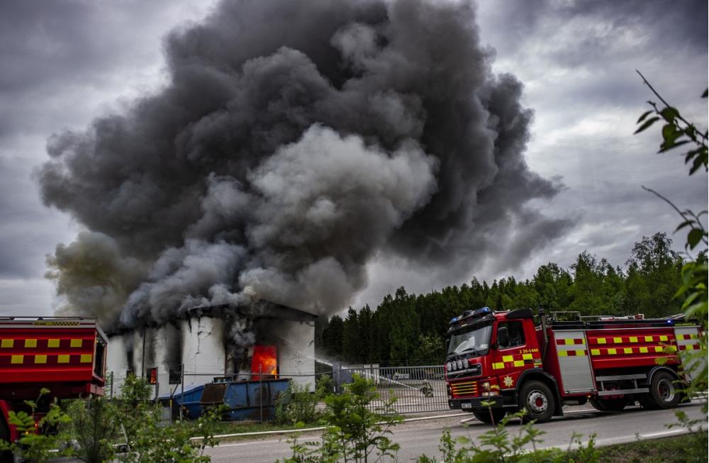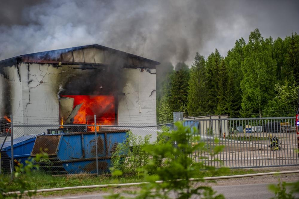 Branden startade runt kl. 07 på fredagsmorgonen i en industrilokal i Västerby, Hedemora kommun. Räddningstjänsten rapporterade om explosioner och förekomsten av gasflaskor i byggnaden.