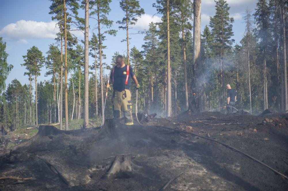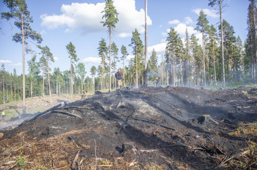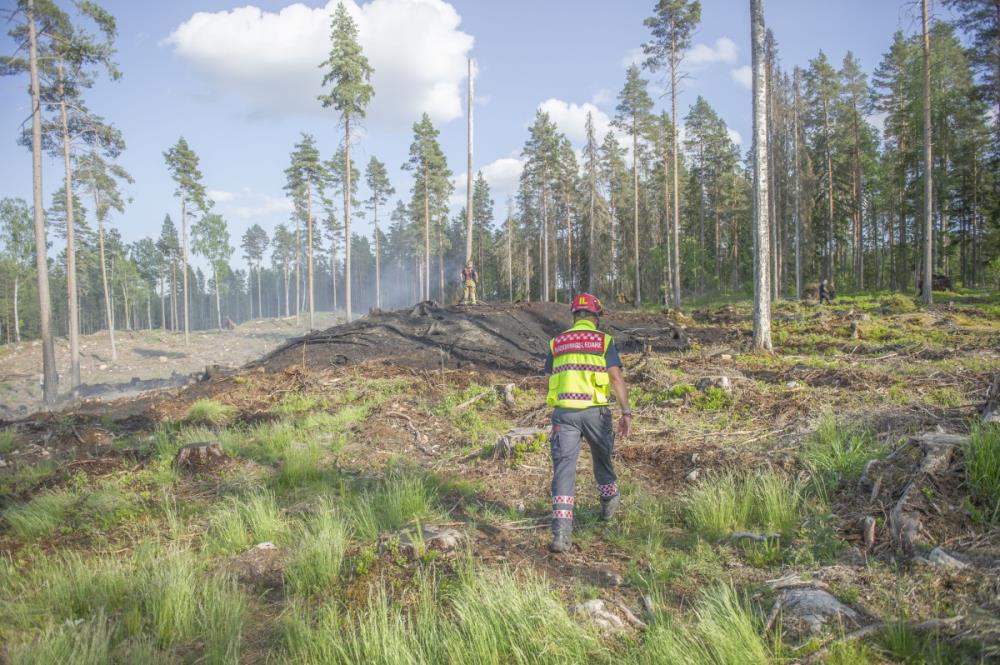 Det var vid 15.30-tiden på södagen som SOS alarm fick in ett samtal från en paddlare på Ljömsebosjön väster om Sala som sett rök komma ut ur skogen.