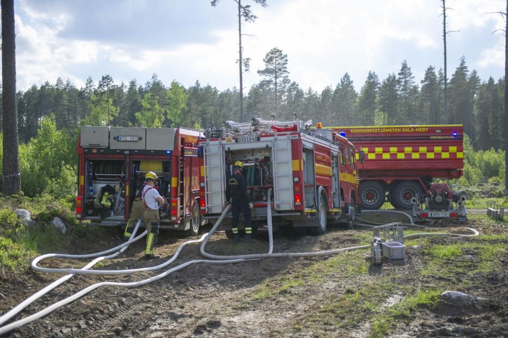 Räddningstjänster fick igår rycka ut med stora enheter väster om Ljumsebosjön utanför Sala.
