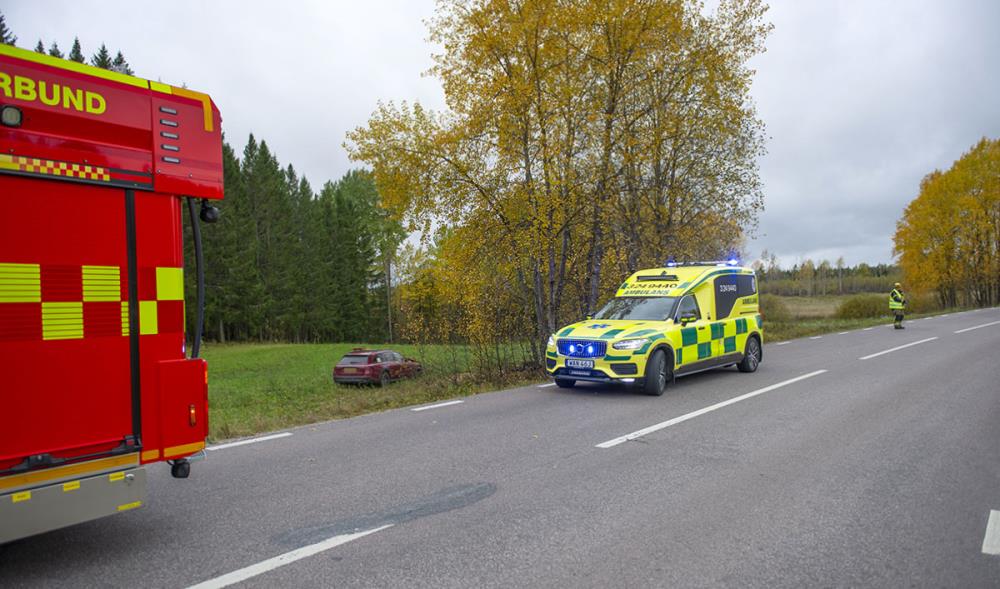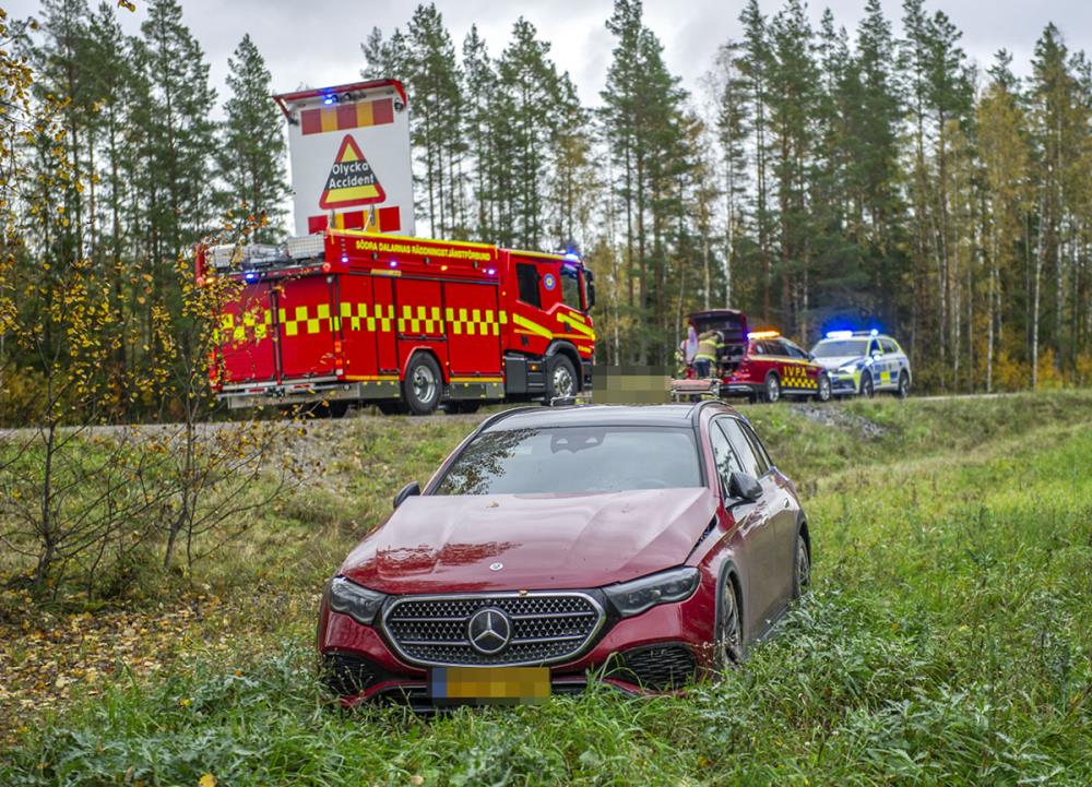 En trafikolycka inträffade på länsväg 256 i Örbäck, Norbergs kommun, då en taxibil körde av vägen och hamnade ute på en åker.