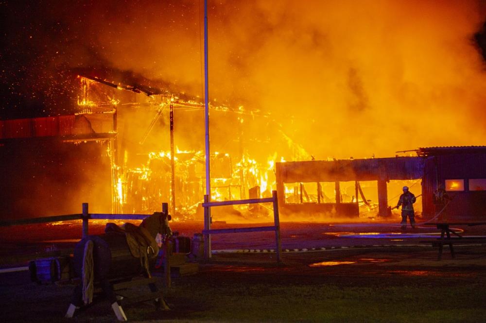 – Det rörde sig om en intensiv brand med kraftigt gnistregn och stor risk för spridning, vilket gjorde att även det närliggande stallet utrymdes, uppger räddningstjänsten.
