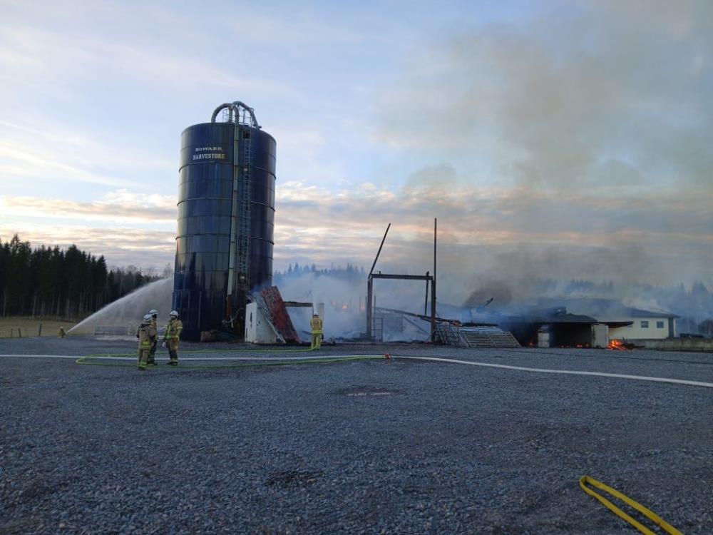 – När vi kom fram var hela ladugården och silosarna kraftigt övertända. Vår prioritet blev att ringa in branden och skydda övriga byggnader, säger insatsledaren Lennart Lundström.